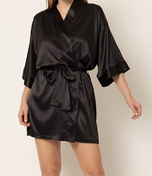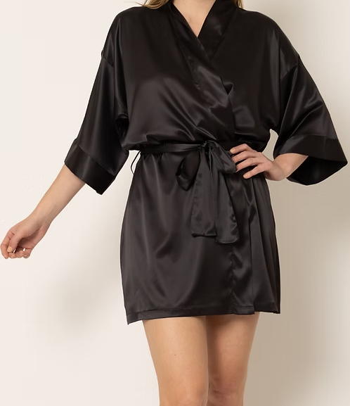 Afirme sua elegância com a peça mais icônica do nightwear. O Robe Curto Black Satin é a união perfeita entre o mistério do preto absoluto e a sofisticação discreta do Cetim Dull. Diferente do cetim comum, seu acabamento fosco confere uma aparência nobre e contemporânea, digna das mais exclusivas boutiques.